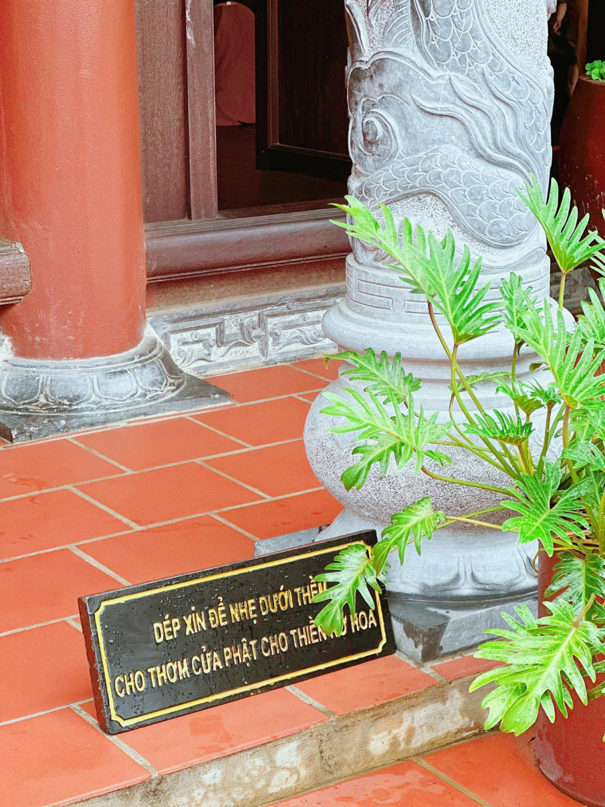 Không chỉ khu điện thờ mà các lối hành lang vòng quanh được các tăng ni, Phật tử, các bạn trẻ theo khóa tu ở chùa lau sạch để mọi người tới đây có thể đi chân trần thoải mái. “Dép xin để nhẹ dưới thềm/Cho thơm cửa Phật cho Thiền nở hoa” – câu nhắc nhở khách tham quan được đặt ở một số nơi trong chùa.