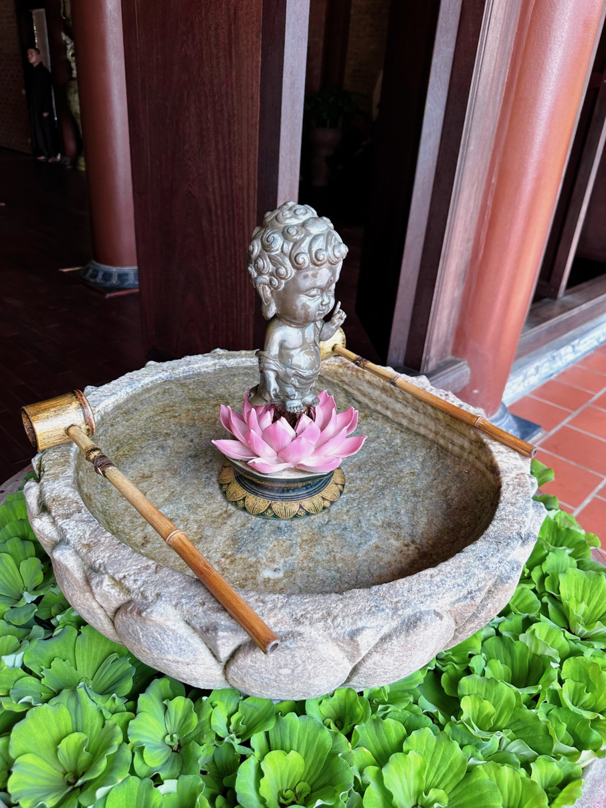 Phật tử và khách tới chùa có thể thực hiện nghi thức Tắm Phật ở khu chính điện.