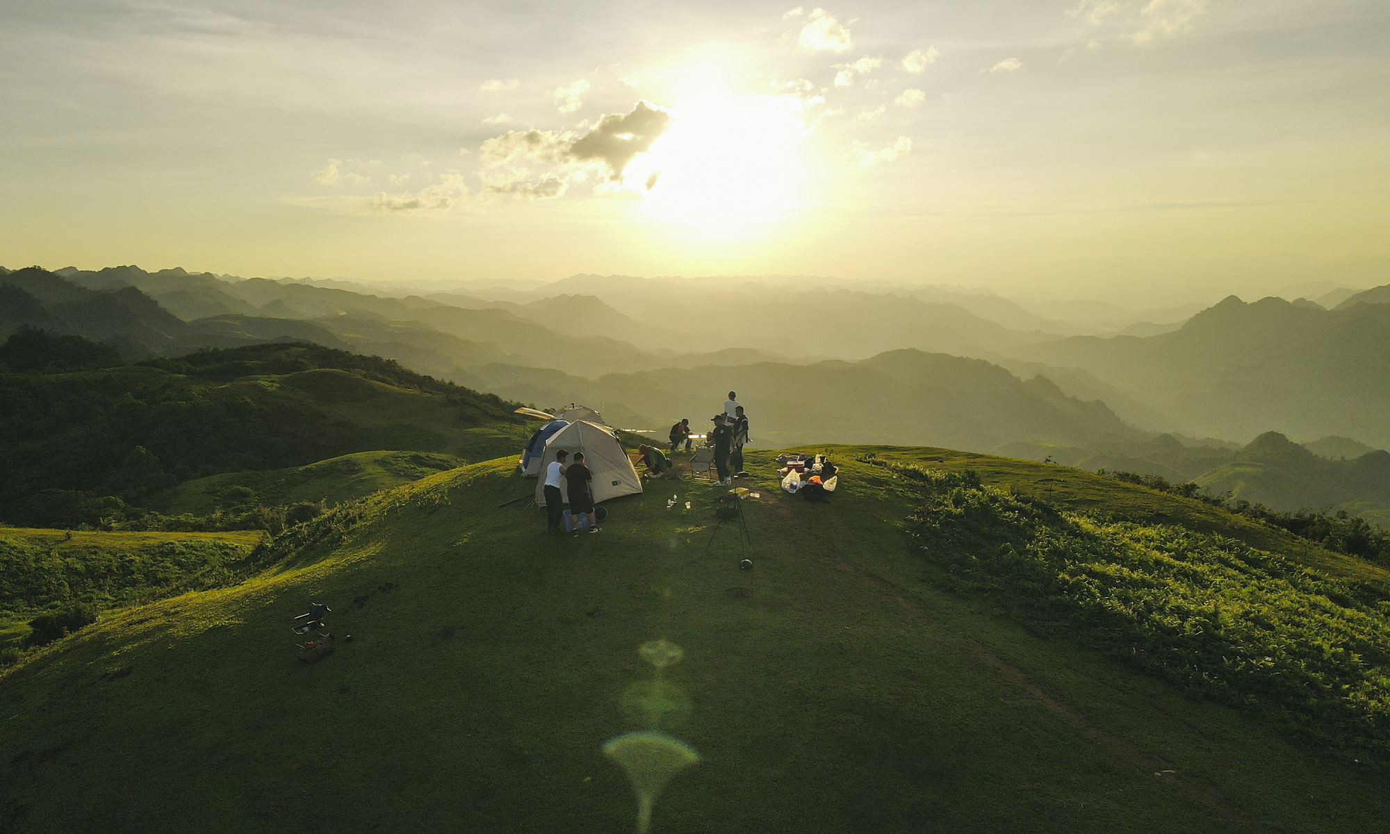 Khi màn đêm xuống, gió bắt đầu thổi mạnh, dưới ánh trăng mờ ảo vẫn có thể nhìn thấy những lớp mây lững lờ trôi bên dưới. Phía xa là khung cảnh lung linh của những ánh đèn từ thị trấn và một bầu trời đầy trăng, sao. Gió thổi mát rượi và bầu không khí trong lành nhờ cây cối xung quanh khiến Kiên chỉ muốn ngồi một chỗ, nhắm mắt và tận hưởng.
