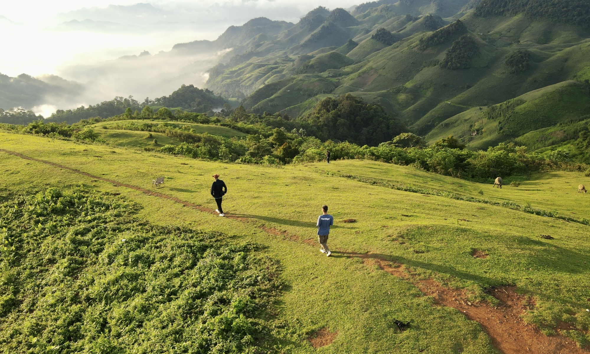 Đến khoảng 2h sáng, mưa tạnh, họ ra khỏi lều để uống cafe, nấu mỳ ăn sáng và đợi mây lên. Những làn mây mỏng bắt đầu vờn quanh chân núi vào buổi sáng, sau đó đùn lên từng lớp rồi dần trở nên dày đặc.