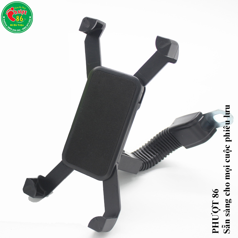 Giá đỡ điện thoại cho xe máy điều chình kích thước bằng cách siết con ốc phía sau, tạo nên một khối kẹp chặt vào giá, không có cách nào để kẻ gian có thể cướp giật chiếc điện thoại của bạn khi gắn lên xe.
